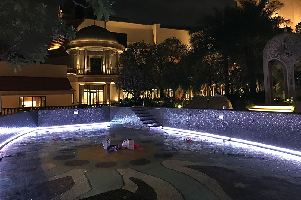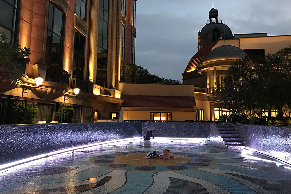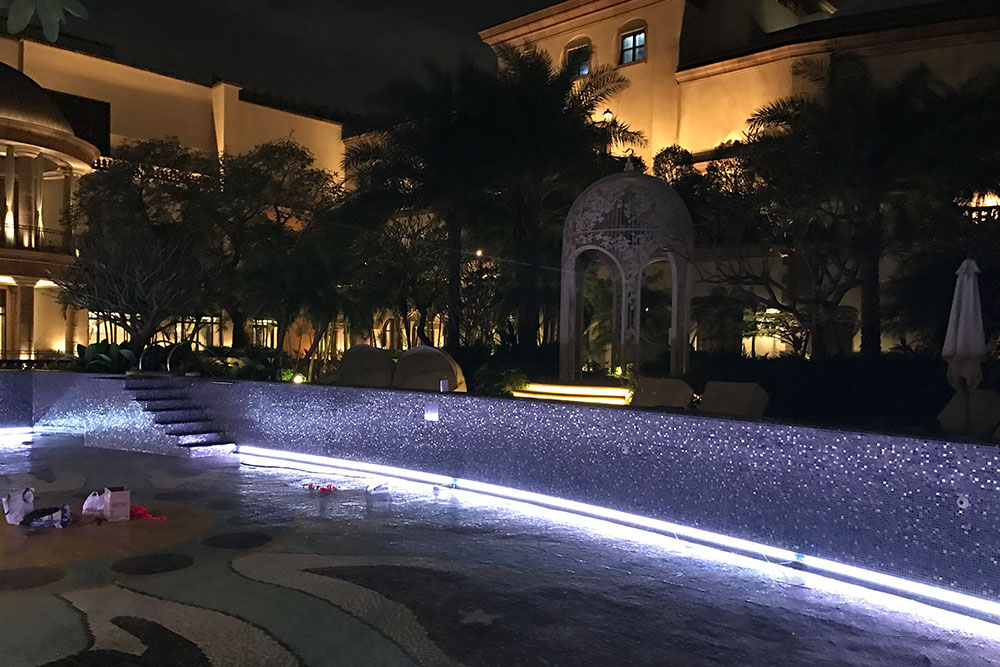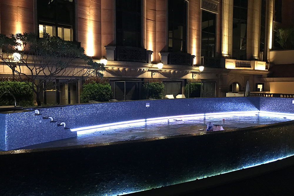 由於本飯店(diàn)遊泳池中LED燈故障率極高(gāo),更換燈具需要(yào)泳池水(shuǐ)放(fàng)盡,維修成本極高(¶gāo),印度駐台工(gōng)程總監特別找了(le)我們ESSENCE中菁科(kē)技(jì)接洽,商談中對於我們的(de)專業知(zhī)β識以及施工(gōng)工(gōng)法,都(dōu)給予極高(gāo)的(de)評價及認可(kě),讓我們順利參與此案施作(zuò)。