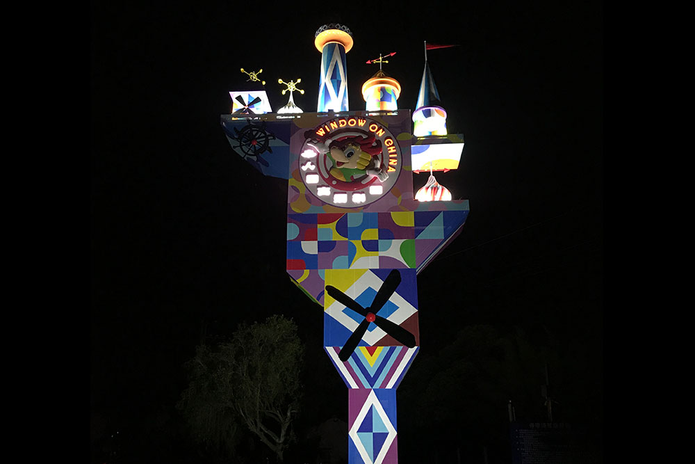 小(xiǎo)人(rén)國主題樂園創立於1984年(nián),牌樓歷經了(le)33年(nián)風摧日(rì)曬,業♠者這一(yī)次將舊牌樓更新,同時也(yě)使用(yòng)了(le)新的(de)塗裝,也(yě)增設了(£le)LED夜間照(zhào)明(míng)的(de)部分(fēn)!
